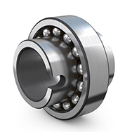 自調心球軸承有兩列球形滾動體,同時外圈帶有一條共用的球面滾道,內圈帶有兩條深溝型連續無間斷滾道。 它們可以是開口或密封的。 該類軸承允許軸相較于軸承座出現較大的偏心,例如,由軸撓曲引起的偏心。